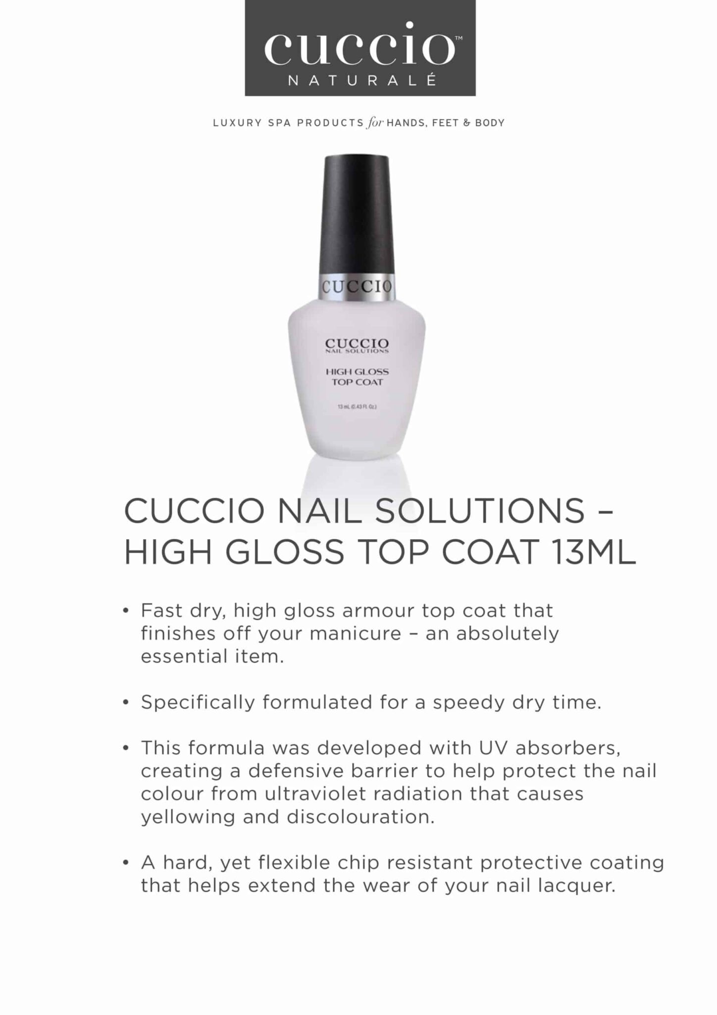 Cuccio Colour Nail Solutions – High Gloss Top Coat 13ml
