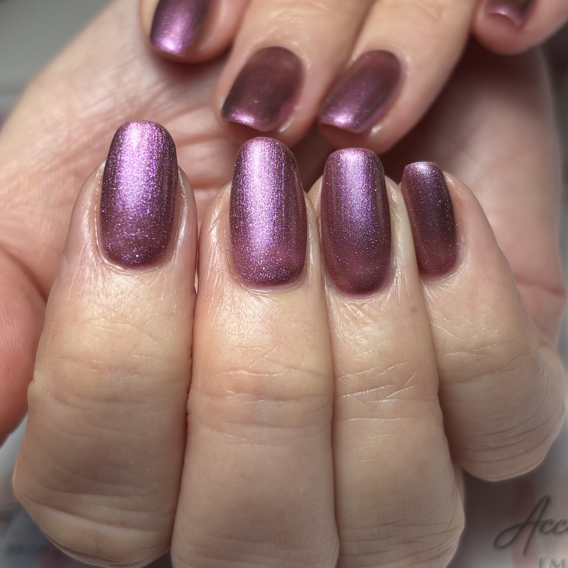 3 thin coats will achieve the full depth of tonal change, and can be applied over our 2am In Hollywood black. The dark base helps to absorb light, which makes the shimmer from the particles stand out even more, leading to a more dramatic and high-contrast result.