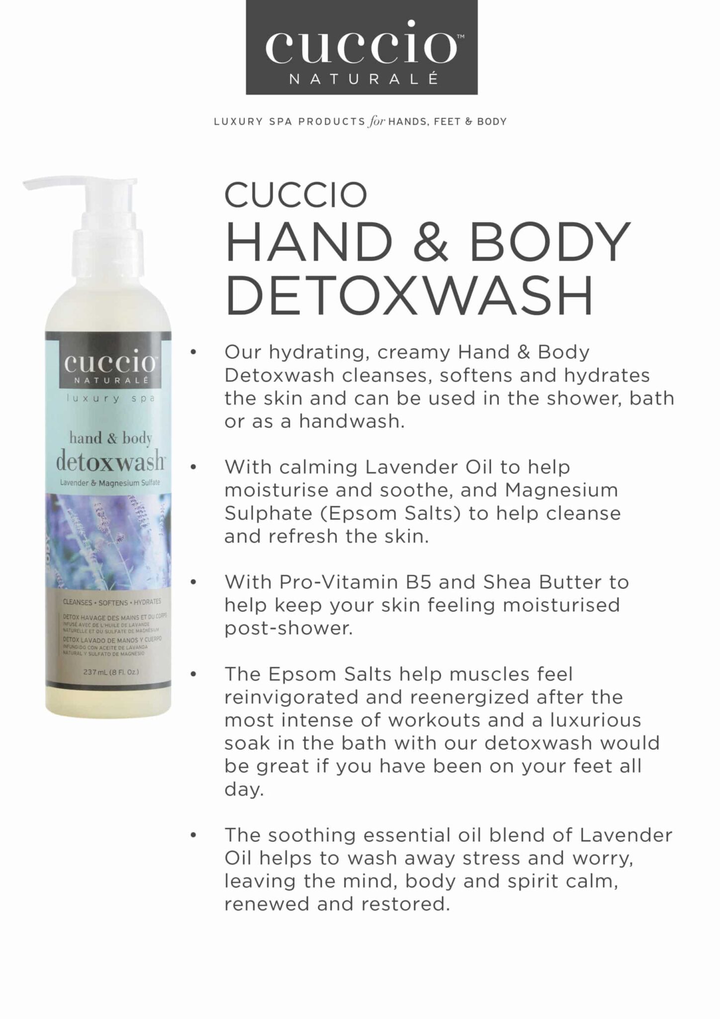 Cuccio Naturale – Hand & Body Detoxwash infused with Natural Lavender Oil & Magnesium Sulfate
