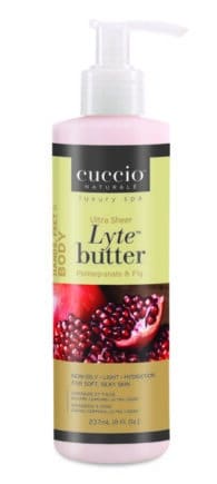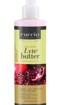 Cuccio Lyte is an ultra-sheer body butter that delivers 24 hour time released hydrating emolients to dry, damaged skin