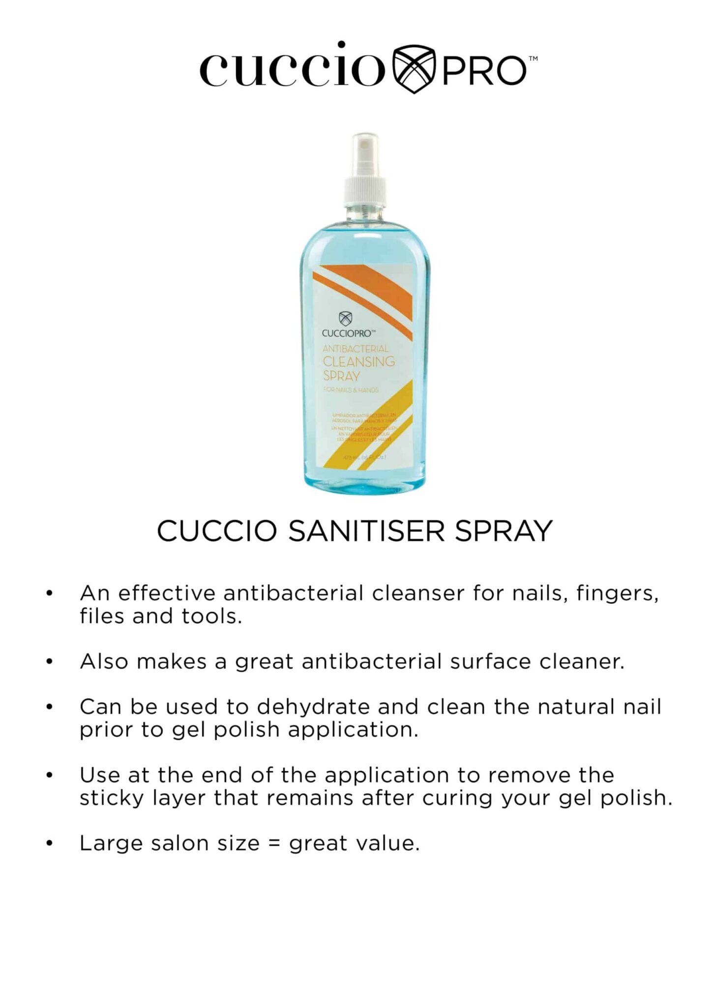 • Spray your own and your clients nails and hands prior to application of any nail enhancement service